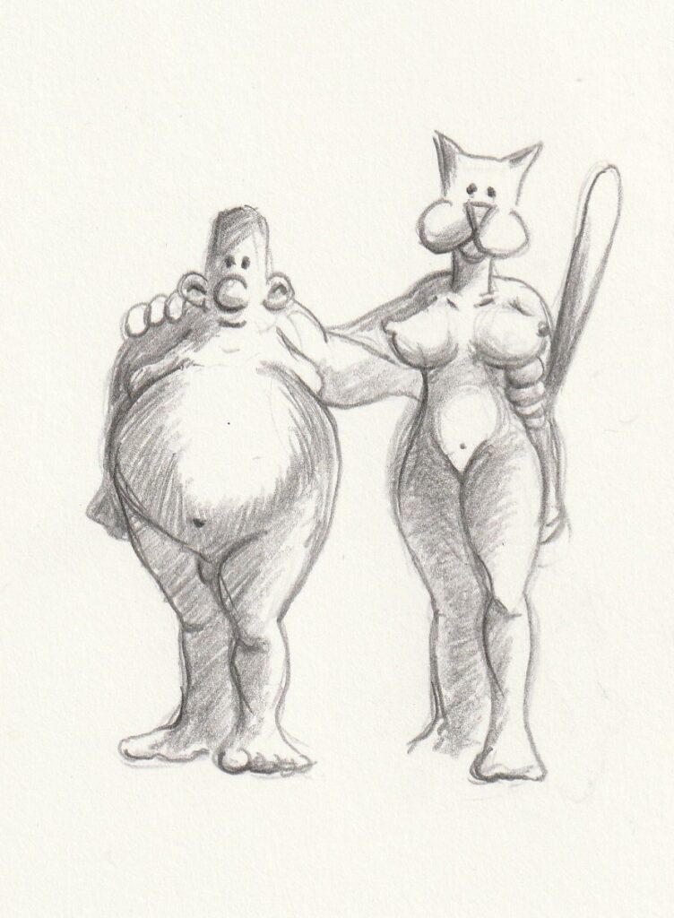 Ik teken Linda en mijzelf meestal als Puss Woman en Naked Man. Dat doe ik meestal als ik een kaart maak voor Linda – verjaardag, moederdag, lichtfeest.