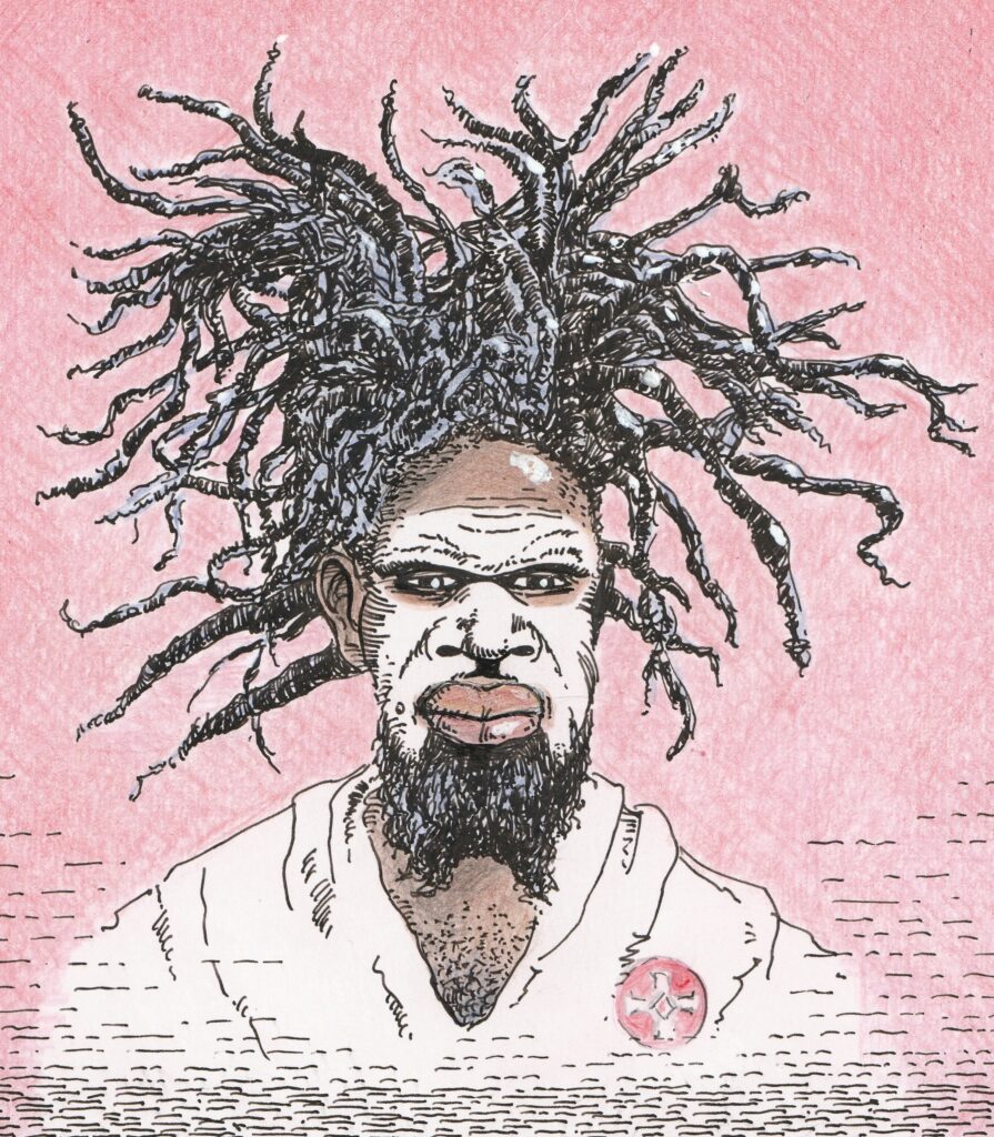 Voor de zekerheid heeft hij zijn gezicht gewhitefaced. Hij is weliswaar onherkenbaar onder zijn kap en die zet hij dan ook nooit af, hij kijkt wel mooi uit, maar je weet maar nooit, een plotselinge windvlaag en je bent gezien. Dan kun je maar beter voorbereid zijn. Die rednecks zijn levensgevaarlijk.